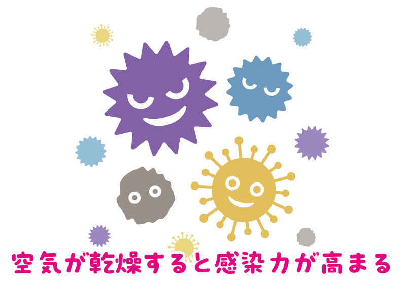 ウイルスは湿度が低い環境で生き残りやすく、空気が乾燥すると感染力が高まります。