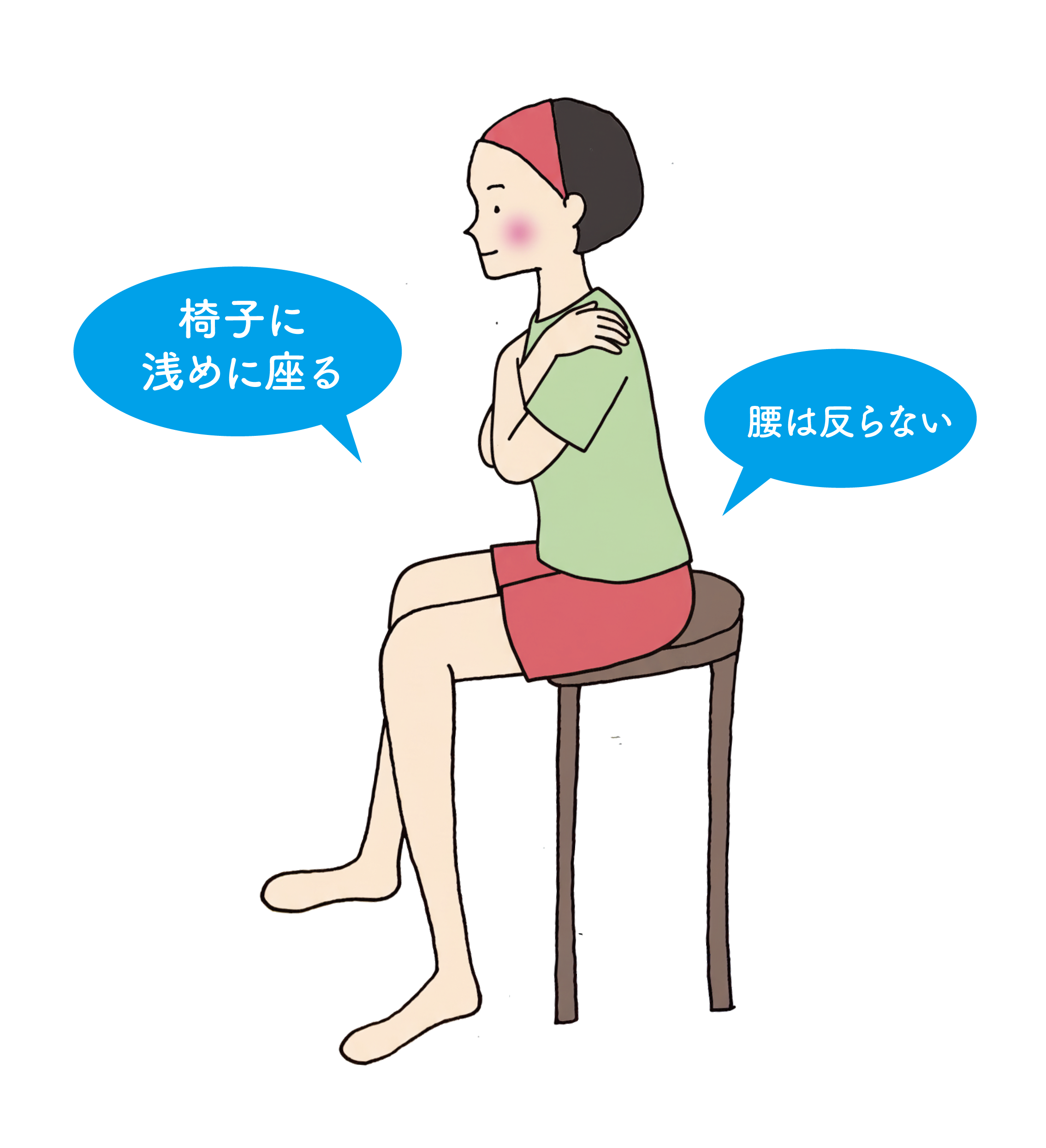 ①椅子に腰かけ、背筋を伸ばします。両腕を胸の前でクロスする。
