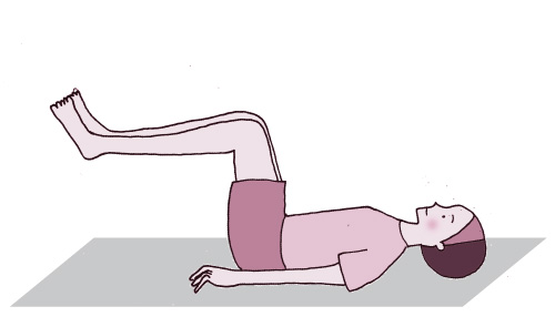 1.仰向けに寝る。両足を浮かせて、ひざを軽く曲げた状態で準備する。