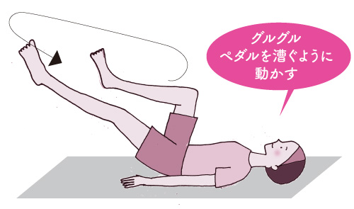 2.自転車を漕ぐように、膝を曲げ伸ばしする動きを交互に行う。(20回)