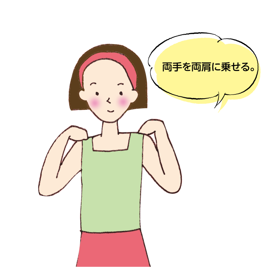 ① 両手を両肩にのせます。
