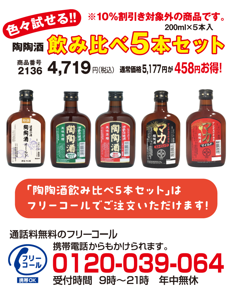 ※「陶陶酒飲み比べ5本セット」は、10%割引対象外です。