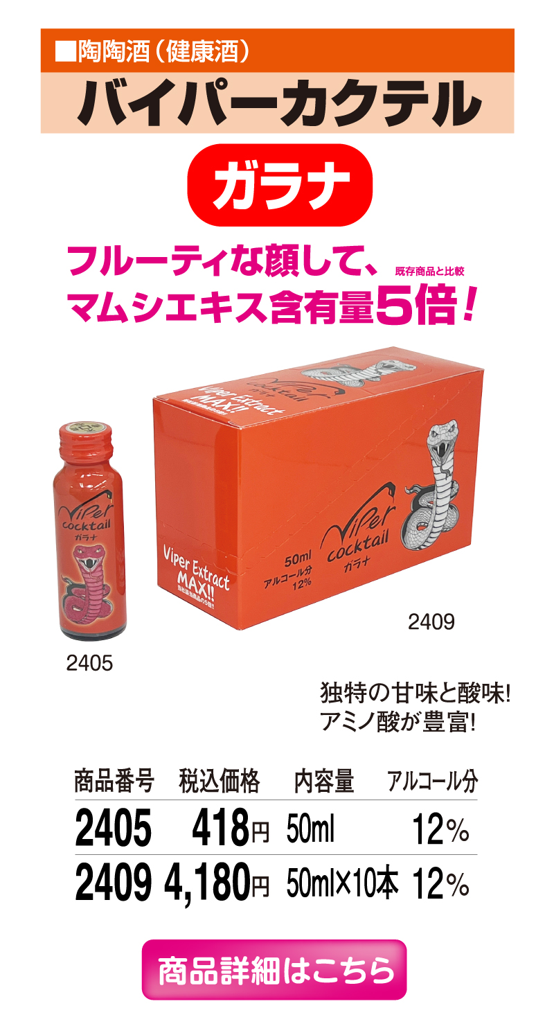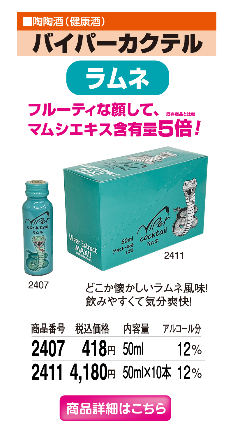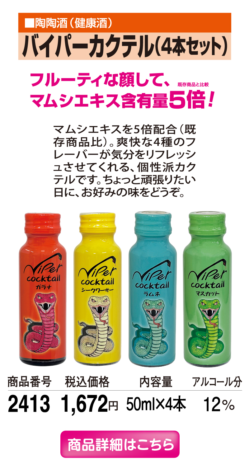 人気の『バイパーカクテル』が下記の価格より