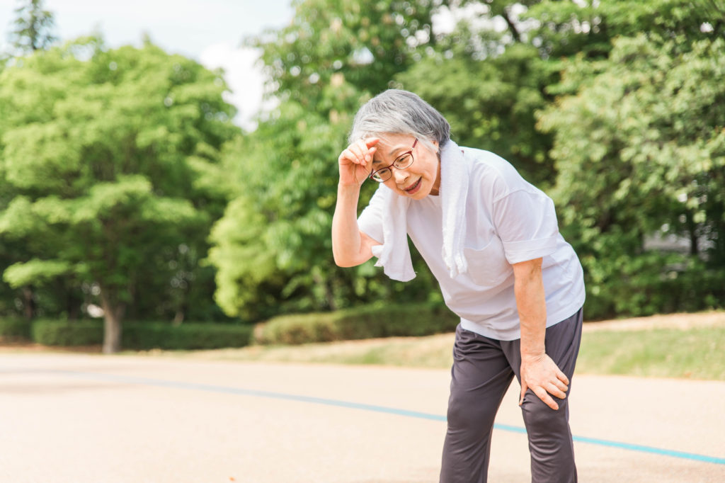 特に高齢者は、体力の低下やのどの渇きが感じにくいなど、熱中症が起きやすい条件が多く、さらに意識障害を起こして転倒などすると、骨折などで寝たきりになる場合もあるので、買い物などは夕方など涼しい時間帯にしましょう。