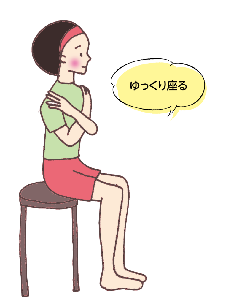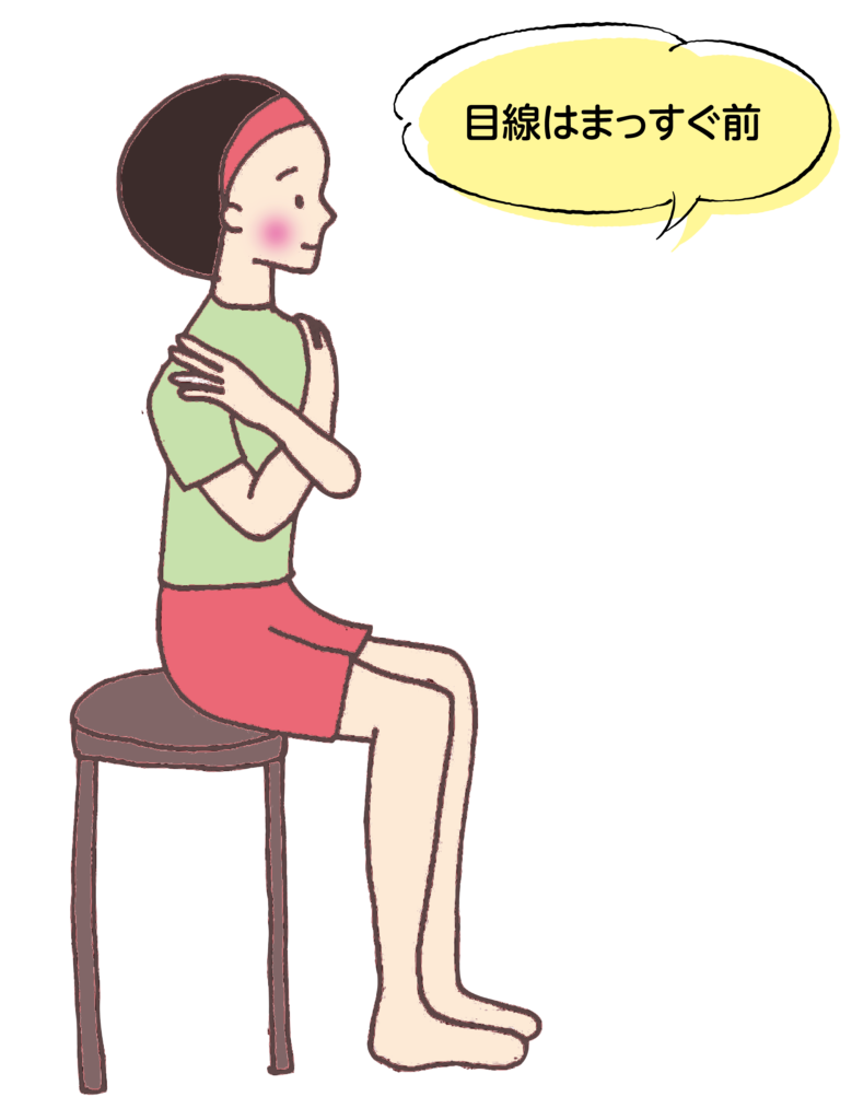 ① 両手を両肩に組んだ状態で椅子等に座ります。