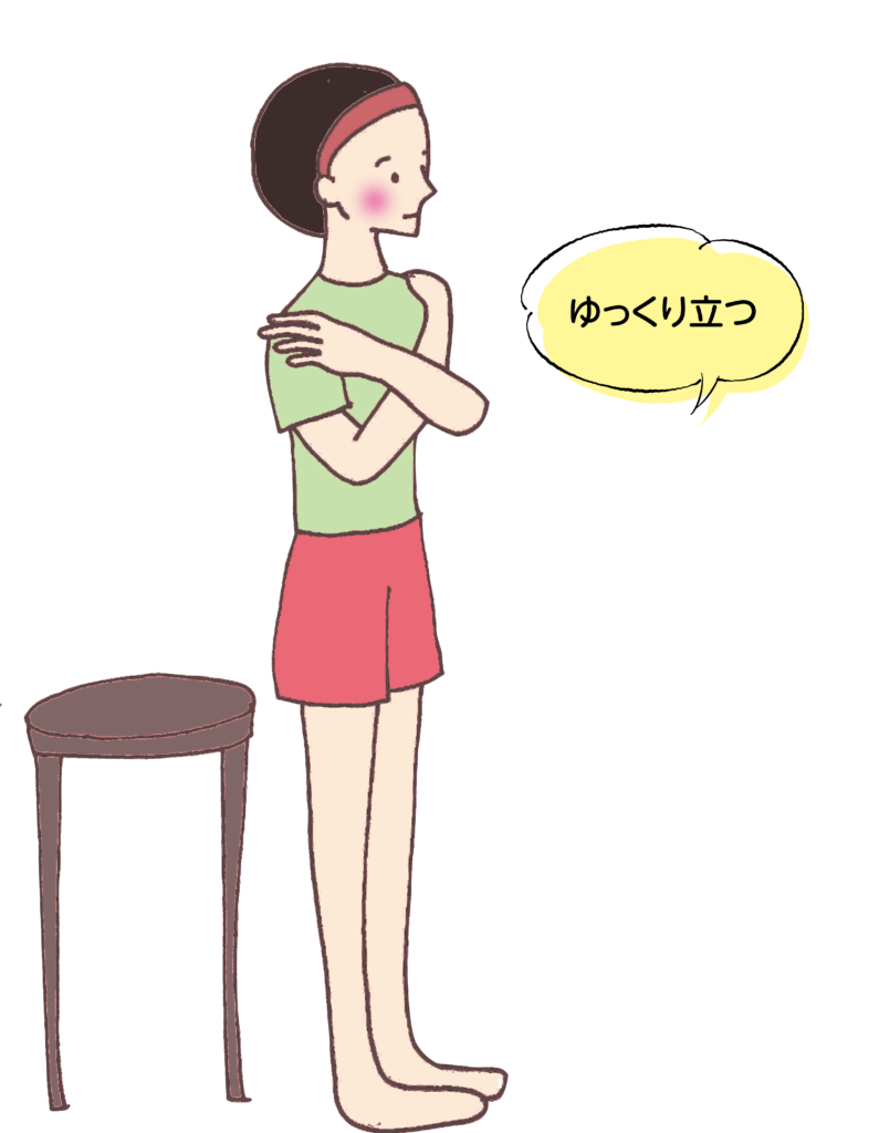 ② 両手を両肩に組んだ状態のまま立ち上がります。