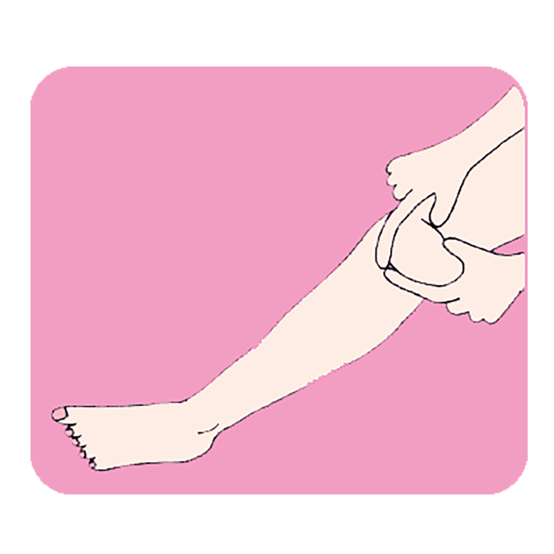 ② ひざの皿を掴んだまま、上・下・左・右・上右・下左・上左・下右の8方向に各5~10秒間動かします。