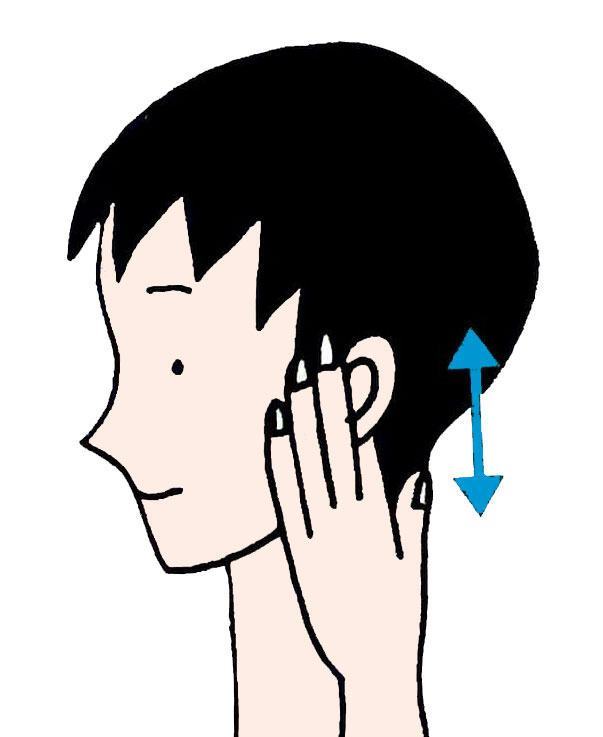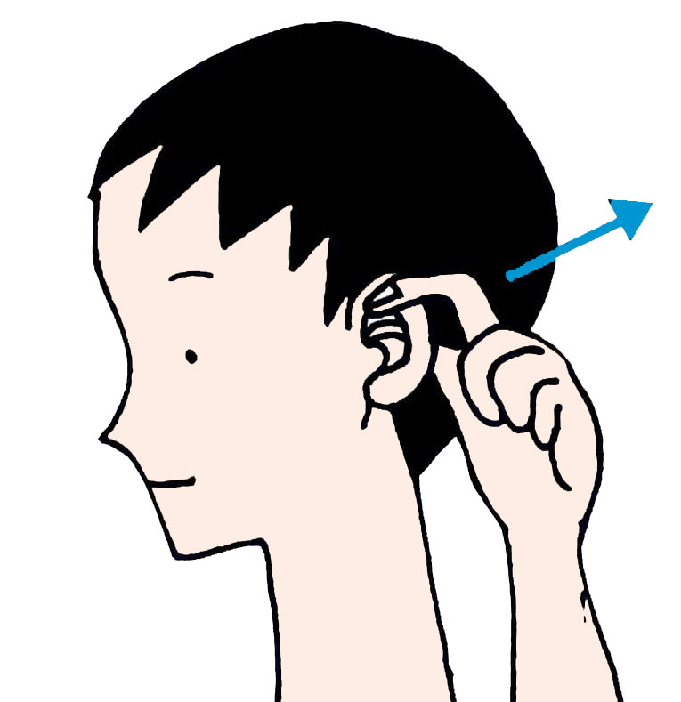 ③人差し指と親指で耳を掴み、外側に引っ張ります。