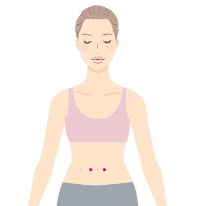 おへそから指2本ほど外側にある位置を人差し指と中指で、5秒間隔で押します。