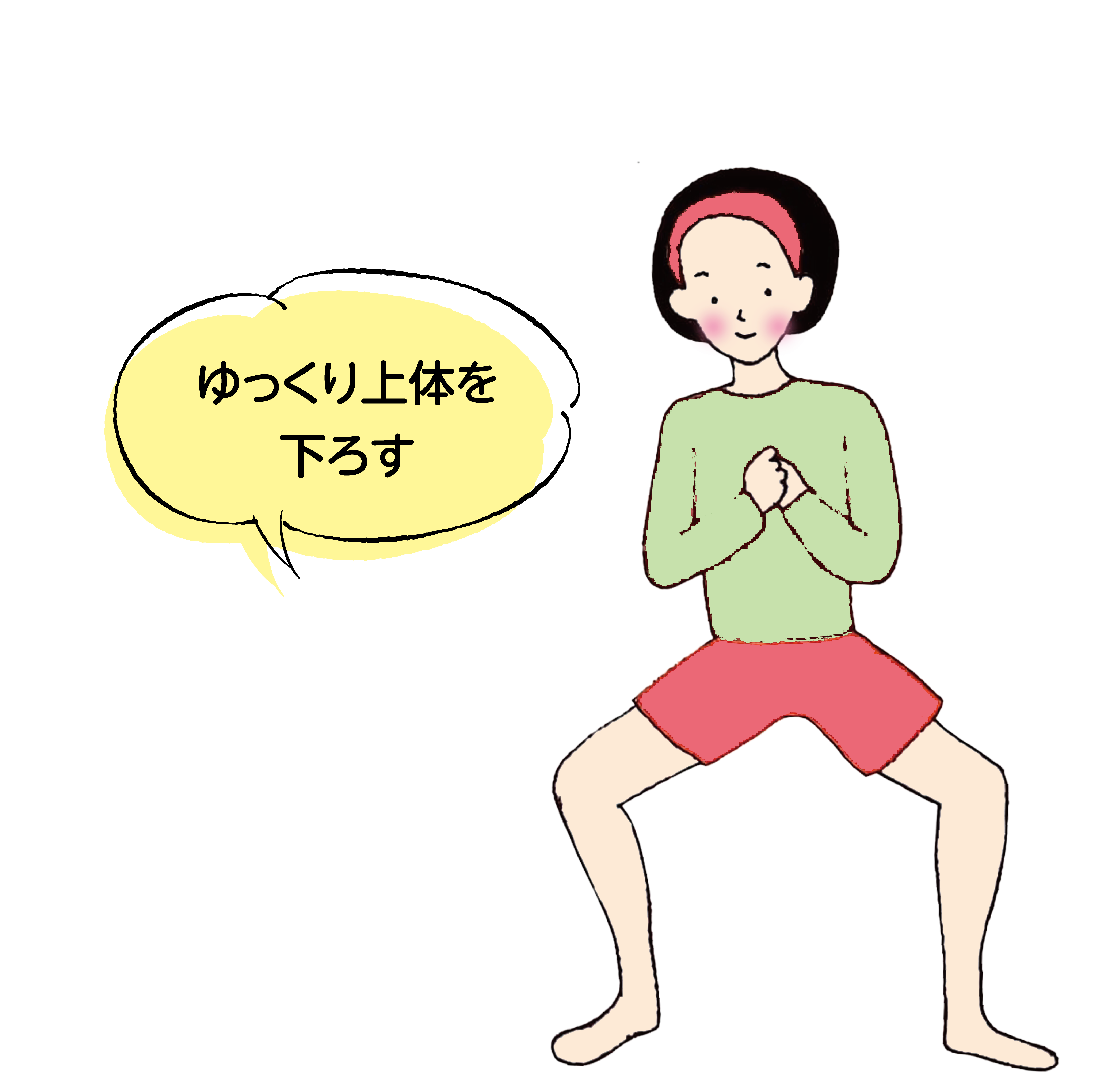 ②下半身にしっかりと体重を乗せるイメージで上体を下ろします。