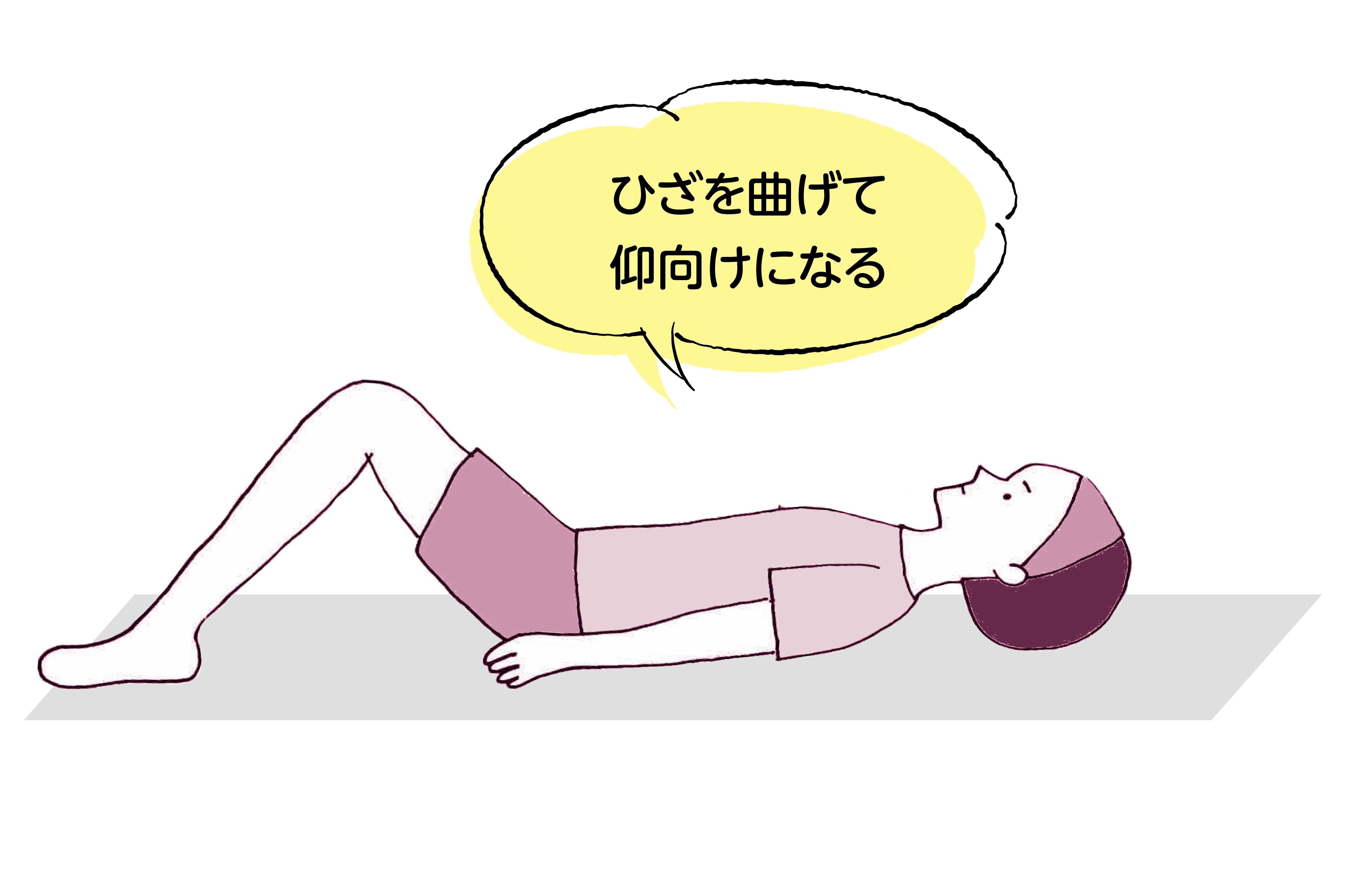 ②おへそをのぞき込むように上体を起こして、呼吸をしながら3秒間キープします。