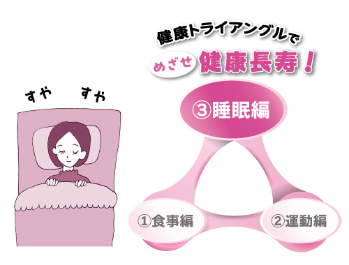 今回は「健康トライアングルでめざせ健康長寿!」というテーマで、「①食事編(健康な暮らし2024年新春号タブロイド2ページ)」、「②運動編(同4ページ)」に続いて、最後は「③睡眠編」をご紹介いたします。