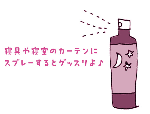 香りはリラックス効果を生み、良い睡眠をサポートするので、最近はラベンダーやヒノキ系の香りを枕や寝具に吹きかける「ピローミスト」と呼ばれるスプレーを活用する方もいます。