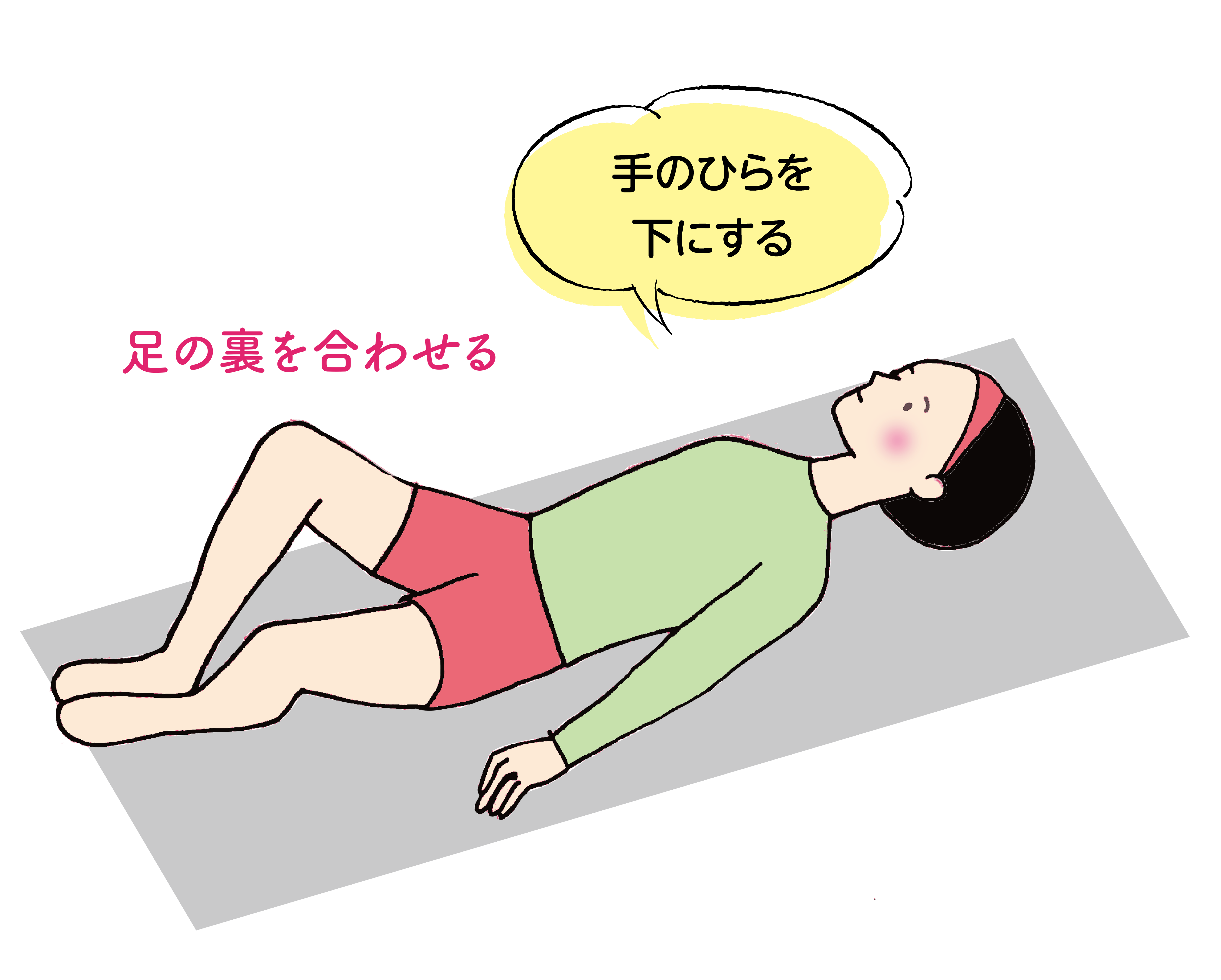 ①1.仰向けになり、手のひらを下にして