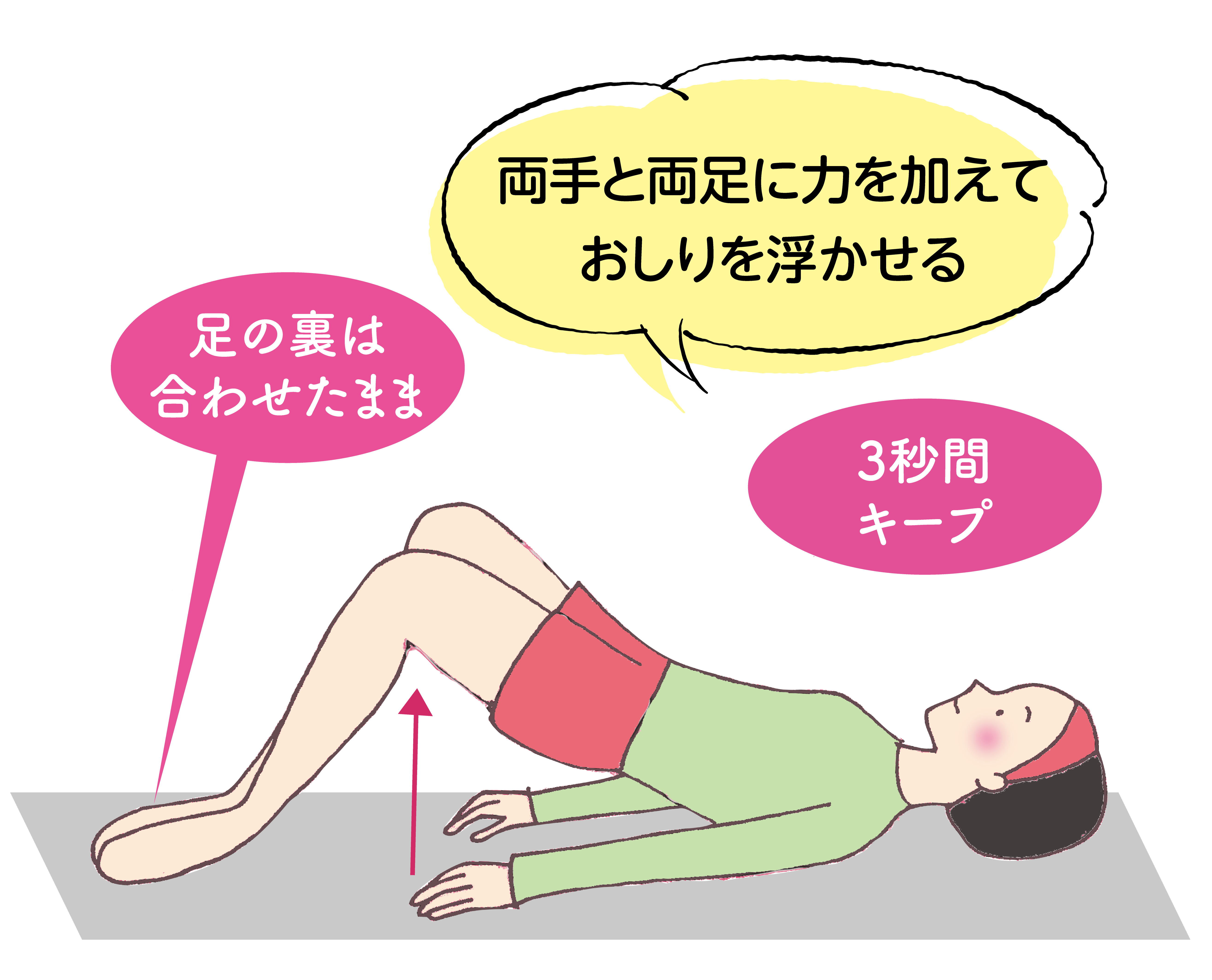 3秒間キープしたら浮かせたおしりを戻します。