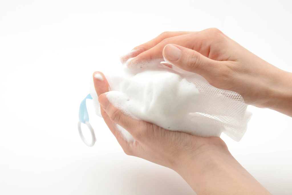 洗顔料を泡立てることは、肌を痛めないための基本です。よく泡立てることで手のひらと顔の摩擦を減らします。「泡立てネット」などの洗顔グッズを活用すると、よりきめ細かい泡を作ることができるのでおすすめです。