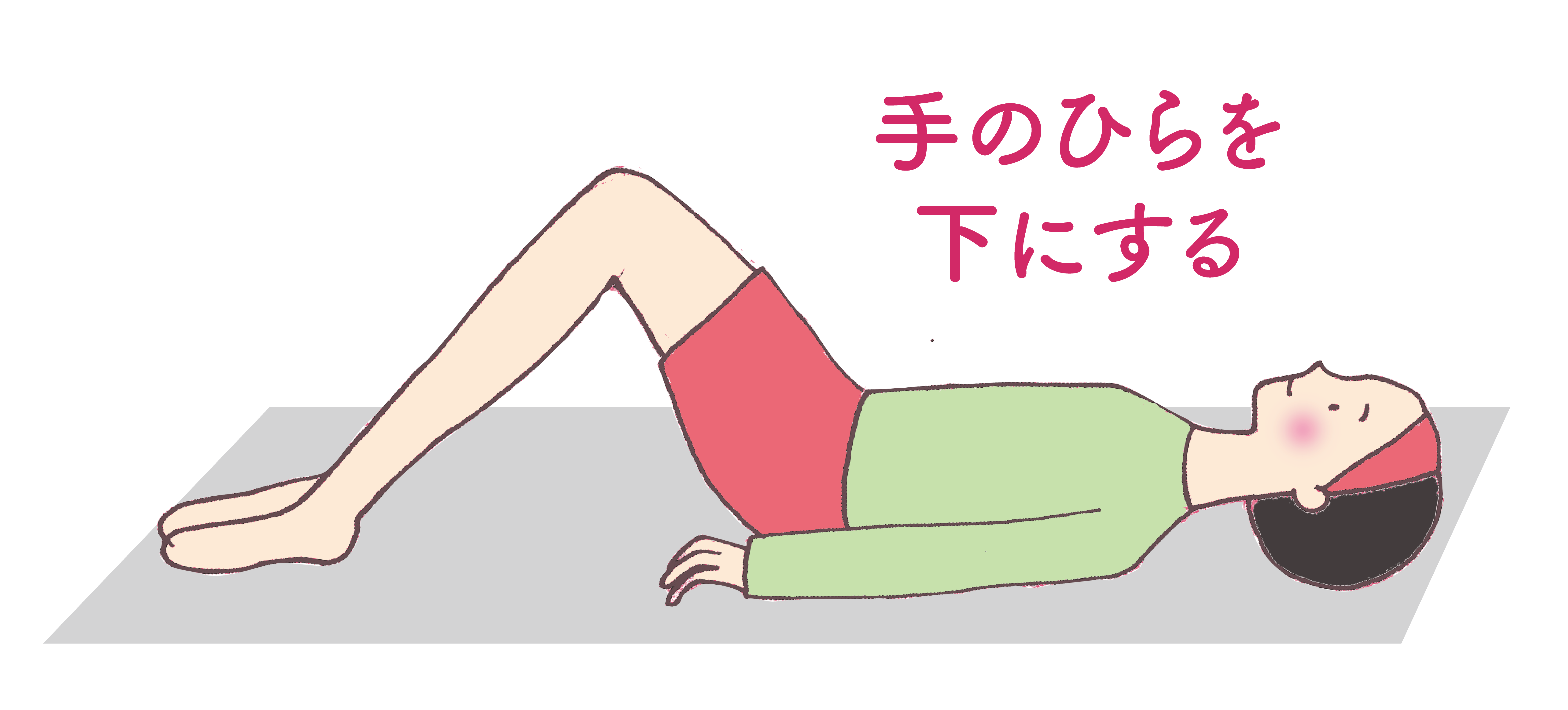 - 手のひらを下にして仰向けの状態になり、ひざを立てます。