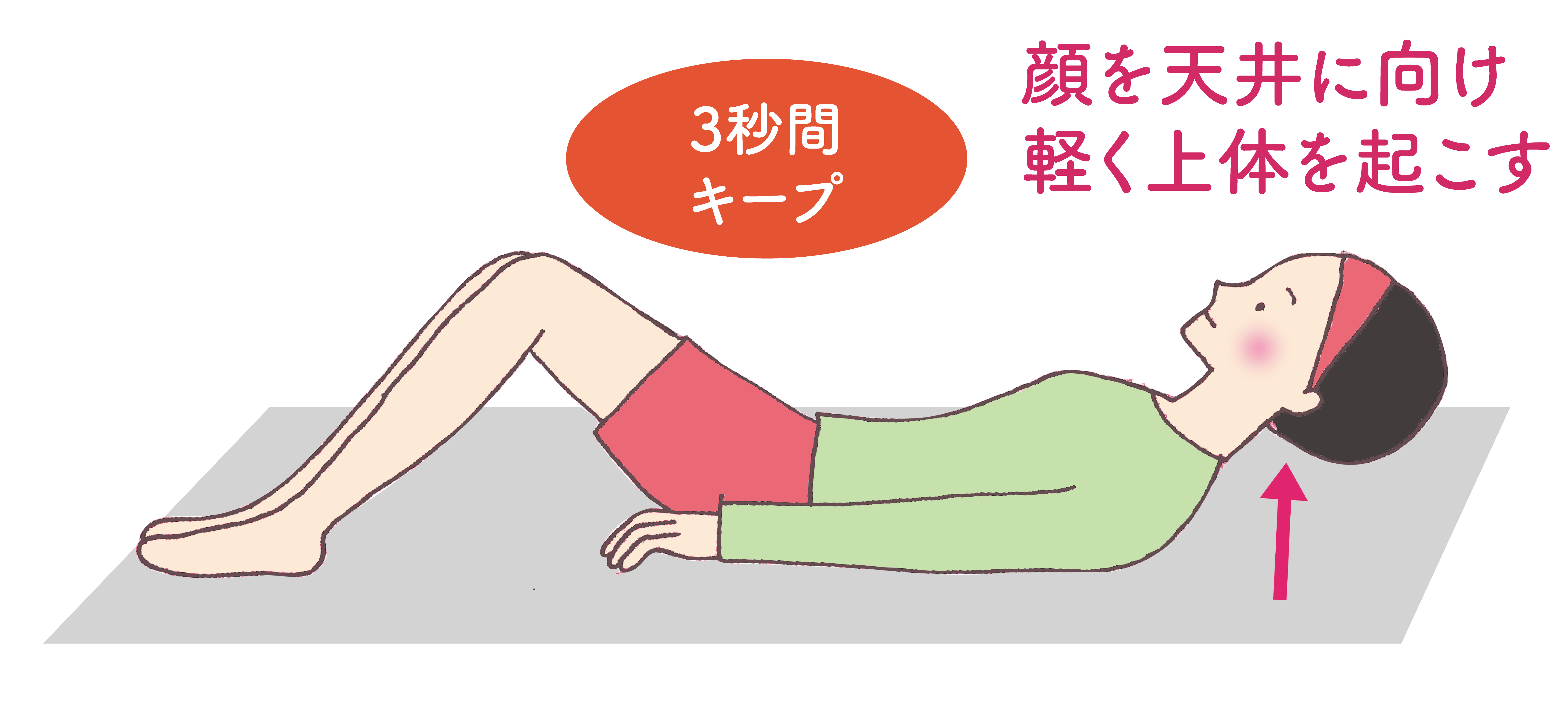 2. 顔を天井に向け、上体を軽く起こします。