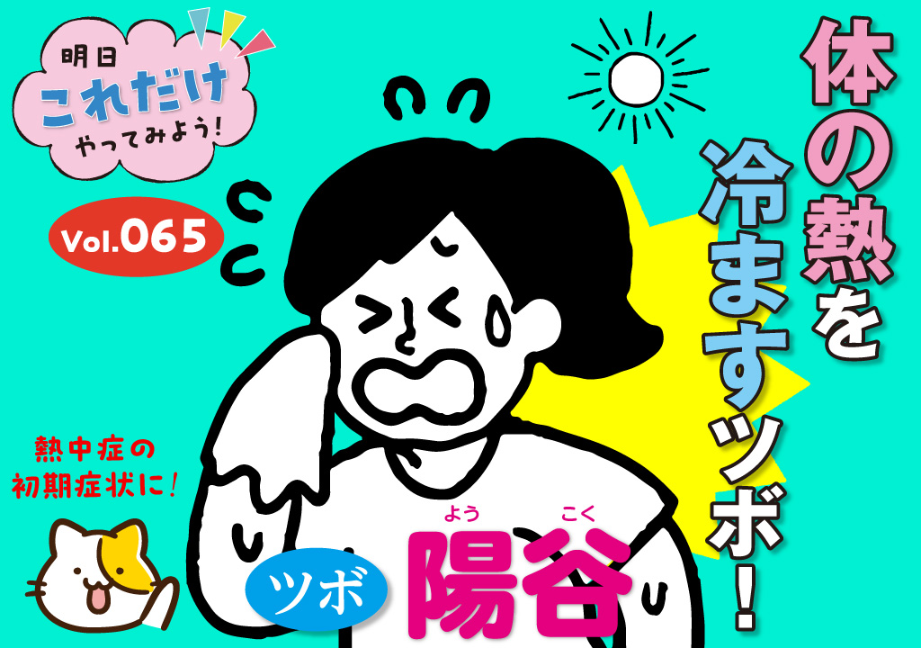 熱中症は、体の中に熱がこもることによって起きる諸症状のことです。頭がボーッとしたり、頭痛がするなど熱中症の初期症状のときは涼しい場所で水分補給をしながら陽谷のツボを押して体の熱を外に放出してあげましょう。