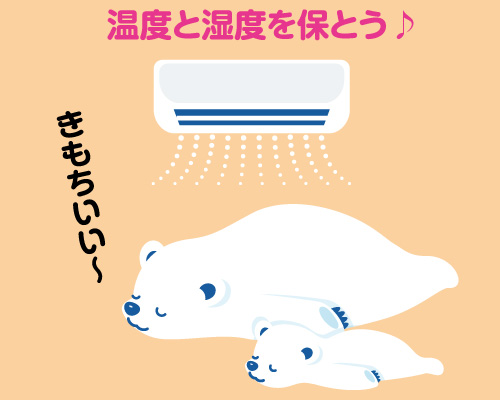 目安として26〜28度の温度、40〜60% の湿度を保つと良いでしょう。適切な温度管理をおこなうために、エアコンや扇風機、加湿器などを上手に使用しながら調整していくことをおすすめします。