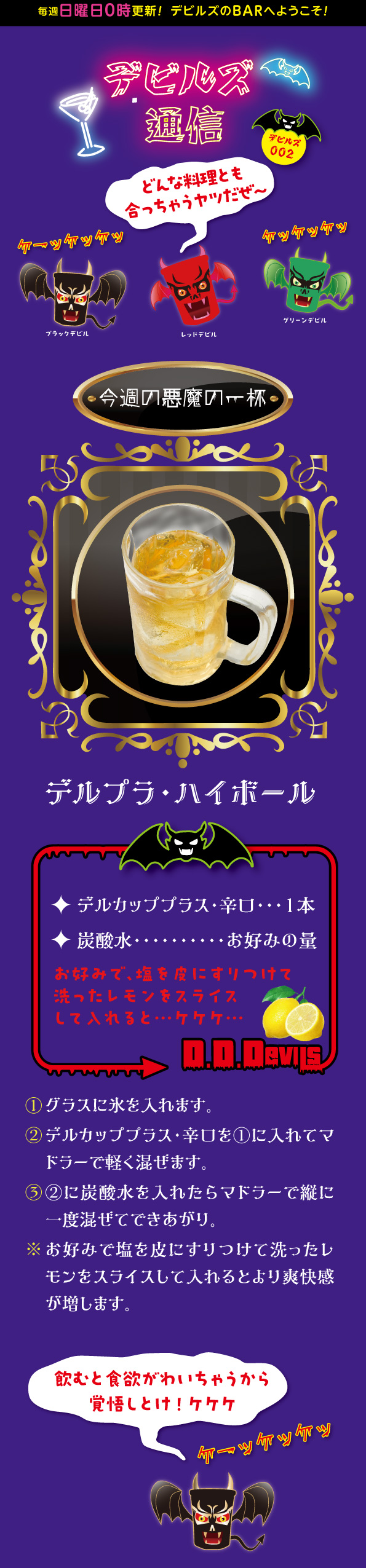 デビルズ通信 Vol.002 デルプラ・ハイボール 2023年4月30日 @kenkura デビルズ通信 2023年4月30日 >>デビルズ通信 Vol.003 元気デルデル・ヨーグルト<<デビルズ通信 Vol.001 マカ・ピリーニャ