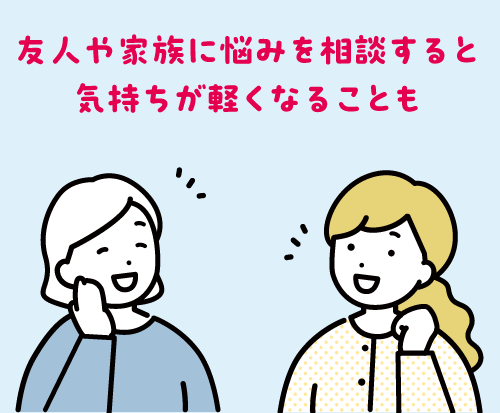悩みがある場合は、友人や知人、家族などに相談することで気持ちが軽くなる場合があります。生活に支障が出るレベルの場合は、速やかに医療機関を受診し、適切な診察・治療を受けることが大切です。