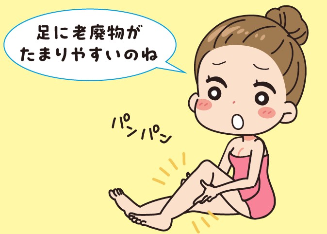 重力によって重いものは下の方に沈殿するため、足は老廃物がたまりやすい部位です。