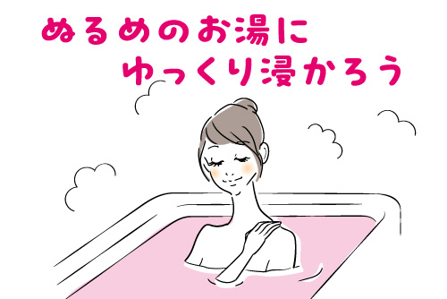 就寝の2〜3時間前に、ぬるめのお湯にゆっくり浸かると、心身のリラックスにつながります。好みの入浴剤をやアロマオイルの香りを楽しみながら入浴したりするのもおすすめです。とくにリラックスに役立つカミツレが入った入浴剤も良いでしょう。体と心をリラックスさせた状態で睡眠できれば、質が高まり、季節の変わり目に負けない体づくりができます。