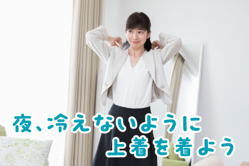 季節の変わり目になると、昼と夜の気温差が大きくなります。そのため、昼にちょうど良い服装であっても、夜になると寒く感じるケースがあります。