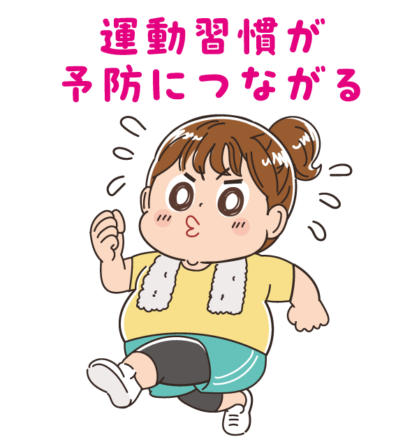 肥満(BMIの値が高いほど)が乳がんのリスクを高めるという研究結果があります。とくに閉経後では、その傾向が顕著です。運動によって免疫機能が上がる、エストロゲンの濃度が下がるなどの効果が証明されており、乳がんの予防につながると考えられています。ぜひ運動習慣を心がけましょう。