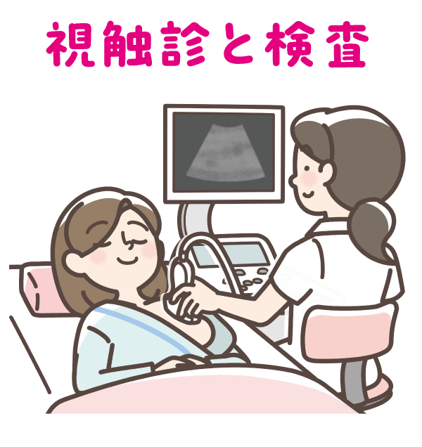 まず、左右の乳房に差や胸のしこり、ひきつれなどがないかを医師が確認します。また、胸だけでなく脇の下も触り、リンパ腺の腫れを確認していきます。