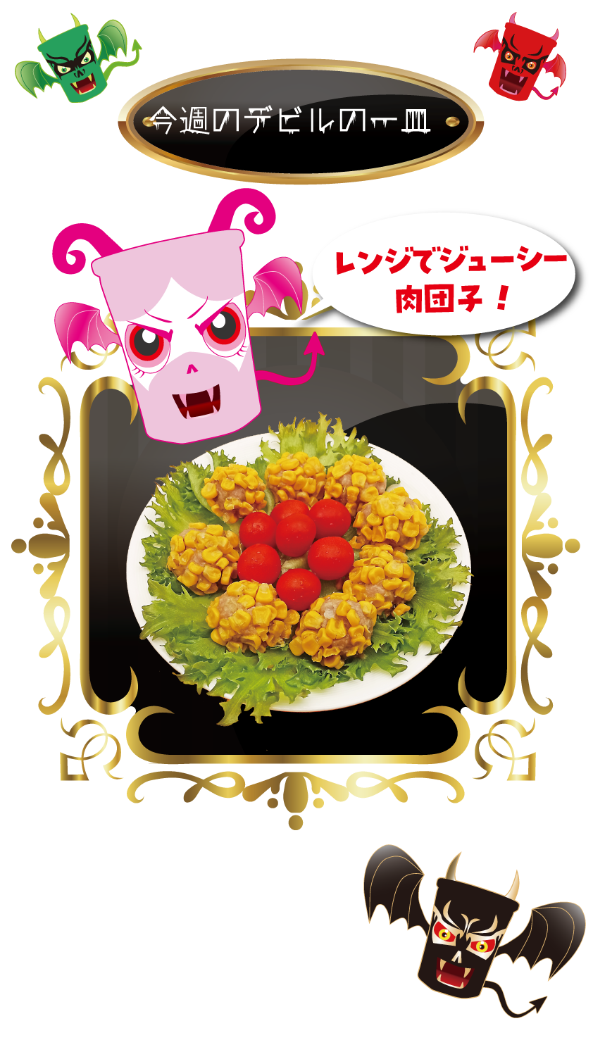 デビルズ通信 Vol.084 レンジで簡単!蒸しコーン肉団子 2024年11月24日 @kenkura デビルズ通信 2024年11月24日 >>次回、デビルズ通信Vol.085は、11月30日(土)深夜24時更新!<<デビルズ通信 Vol.083 フルーツ&梅ホットコーラ