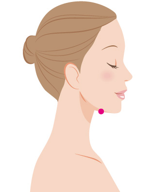 あごの下、中央のくぼみにあるツボです。親指をツボに当て、そのまま斜め上を見るようにあごを上げて首の筋を伸ばします。