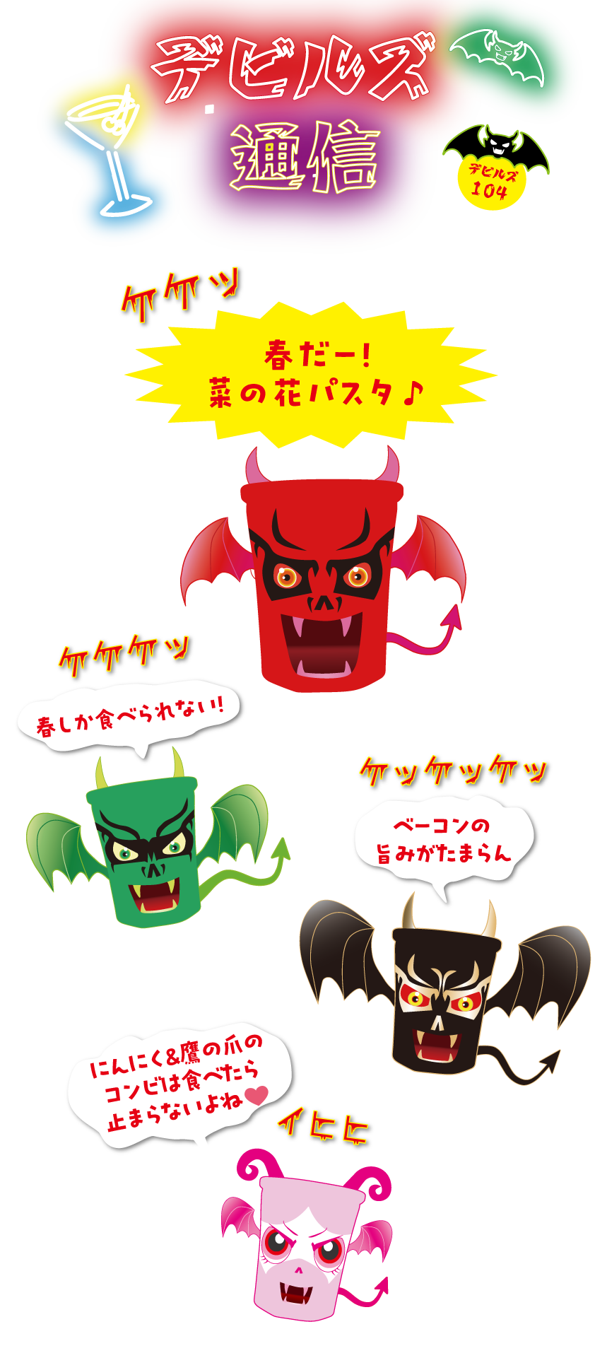 デビルズ通信 Vol.104 菜の花とベーコンの春パスタ 2025年4月12日 @kenkura デビルズ通信 2025年4月12日 >>次回、デビルズ通信Vol.105は、4月19日(土)深夜24時更新!<<デビルズ通信 Vol.103 ピンク・デル・ピンク
