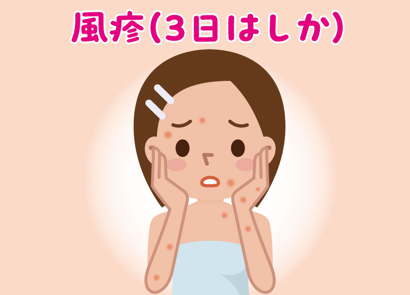 風疹(3日はしか)は、風疹ウイルスにかかることで発症する感染症です。感染すると、熱や発疹、倦怠感やリンパ節の腫れなどが現れます。とくに大人がかかると、熱や発疹の期間が長くなり、重症化する傾向があります。