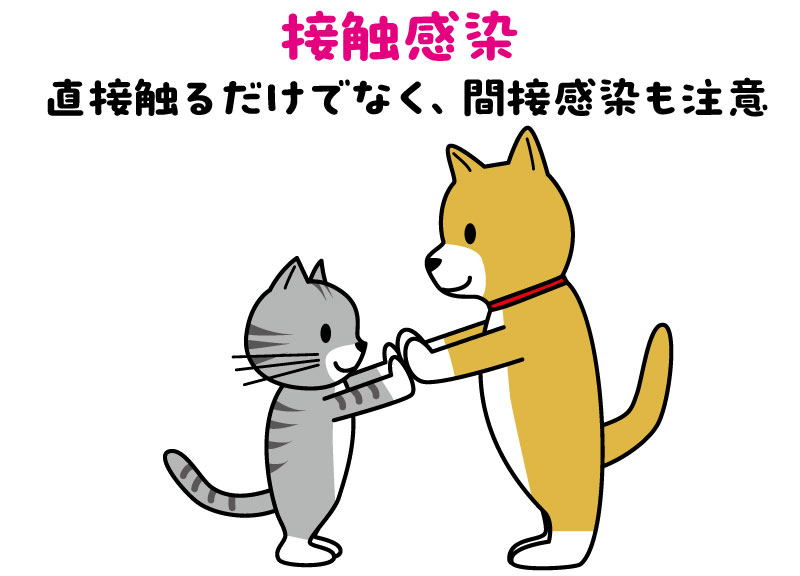 接触感染とは、感染者から排出された細菌やウイルスなどの病原体を含む体液や唾液、分泌物や排出物などに触れることで感染するものです。感染物に直接触れるだけでなく、物を介して間接的に触れることでも起こります。
