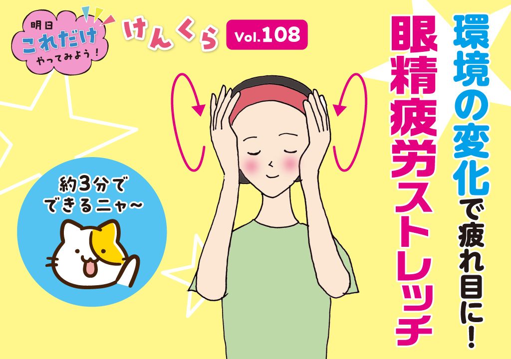 スマホやパソコン作業が続くと、目の奥がジーンと重くなることも。このストレッチで、目の周り〜首肩までをゆるめてリフレッシュしましょう!