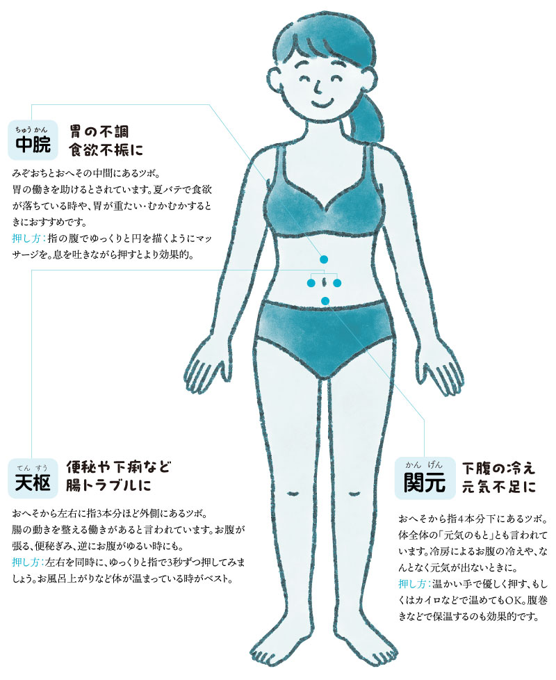 今回ご紹介する3つのツボは、そんな夏の胃腸トラブルにやさしくアプローチし、内臓の調子を整えるのに役立ちます。