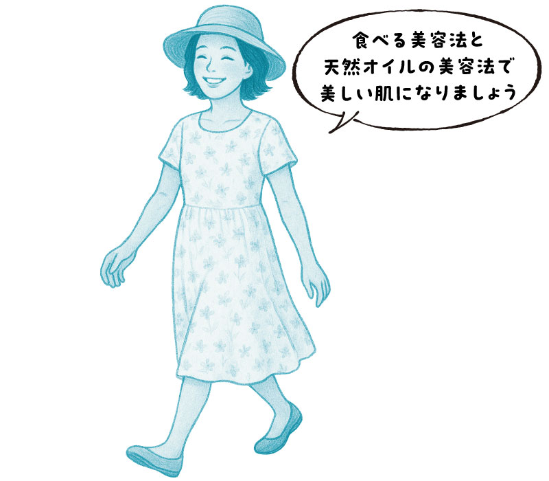 今回は、夏の美肌づくりに役立つ「食べる美容法」と、吉祥天クリームや乳液にも配合されている注目の「天然オイル成分」についてご紹介します。
