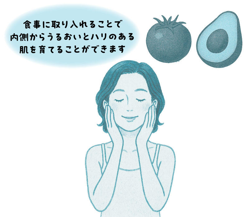 「森のバター」とも呼ばれるアボカドは、ビタミンEやオレイン酸が豊富で、肌の乾燥やハリ不足にアプローチ。クリーミーな食感で満足感も高く、サラダやディップなど使い勝手も良いのが特長です。