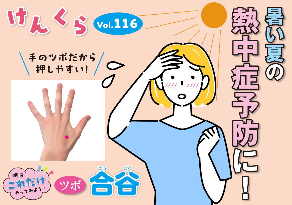 暑さが厳しい夏は、「合谷」をゆっくりとやさしく押すことで、体の熱を適度に調整することが期待できます。