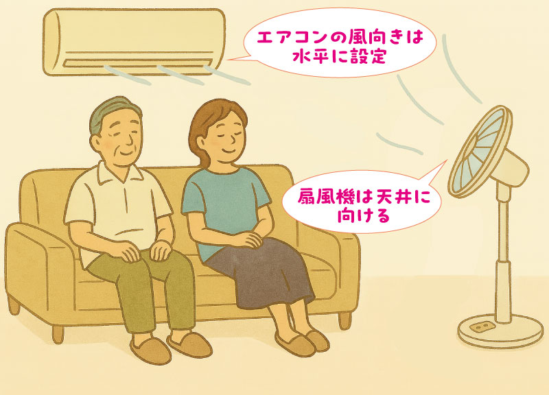 また、エアコンだけに頼らず、扇風機やサーキュレーターを併用して室内の空気を循環させましょう。効率的に冷房効果を高めることができます。